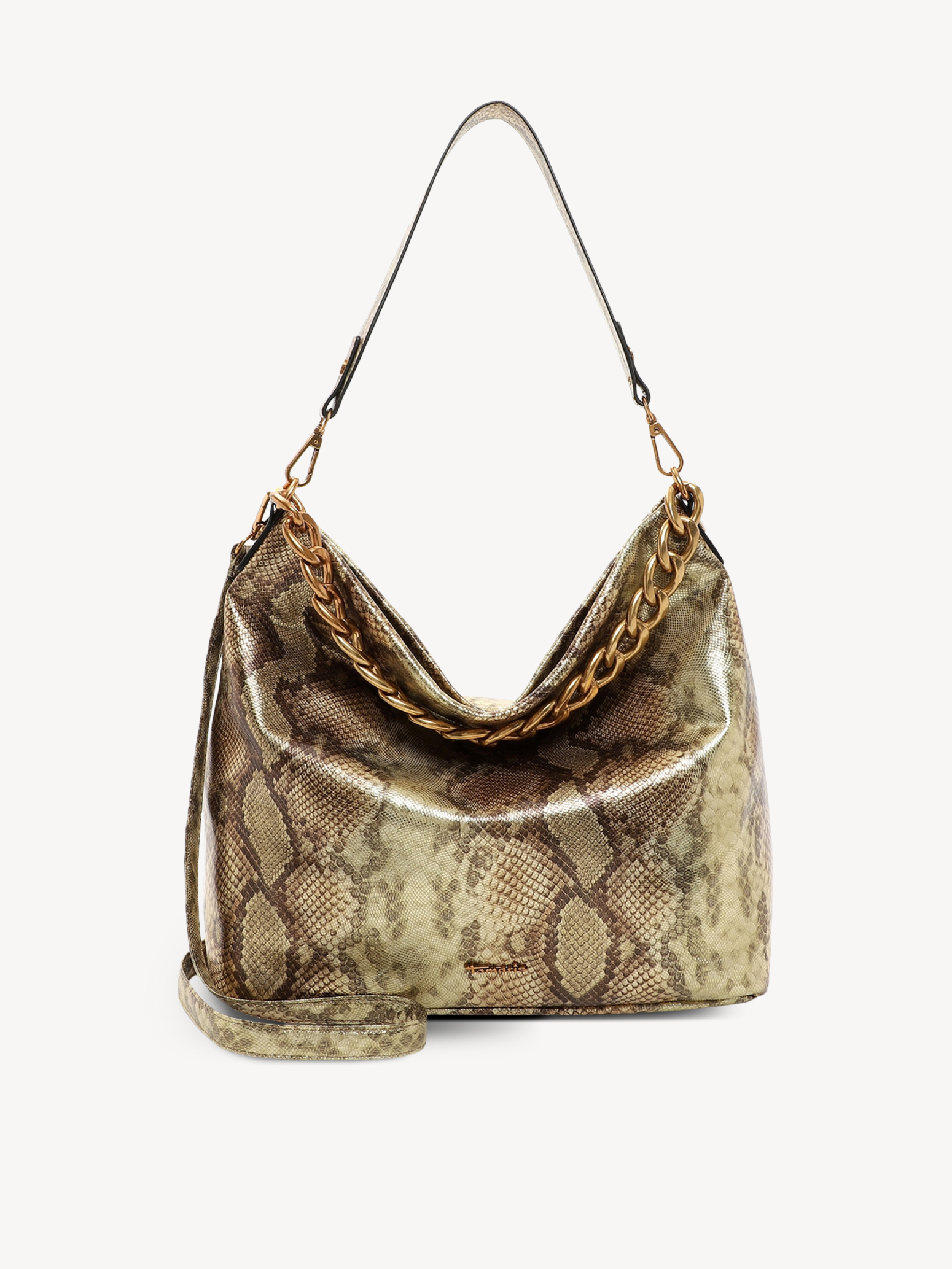 Für jedes Outfit das passende Accessoire Authentisch, selbstbewusst und schön - so zeigen sich Frauen im Alltag. Selbstverständlich am liebsten mit ihrer Lieblingstasche. Mit Mattea - dem schicken Beutel in Animal-Design mit Reißverschluss - ist die neue und treue Wegbegleiterin immer dabei. Ein wahrer Alltagsbegleiter - der Beutel. Es ist so einfach, auch im größten Trubel gut auszusehen. Das Modell besteht aus Feinsynthetik und lässt sich mit einem Reißverschluss verschließen. Ein optisches Highlight ist der Beutel mit geprägter Reptilien-Optik und dem Animal-Design. Ob jung oder nicht mehr ganz so jung, klassisch oder modern: Tamaris hat für jeden Style eine große Auswahl an tollen Accessoires. Der Beutel hat ein übersichtliches Hauptfach. Ein Rückfach mit Reißverschluss bietet zusätzlichen Stauraum und erlaubt den einfachen Zugang zu Dingen, die man zügig zur Hand haben möchte. Für alle, die eine weiche Haptik lieben - Mattea ist angenehm anschmiegsam. Einen verspielten Akzent setzen die dekorativen Ketten. Über der Schulter ist dieses Modell mit dem angenehmen, längenverstellbaren und abnehmbaren Umhängeriemen und dem Tragegriff zu tragen. Viel Platz für alles, was unterwegs dabei sein muss, bietet der Beutel.
