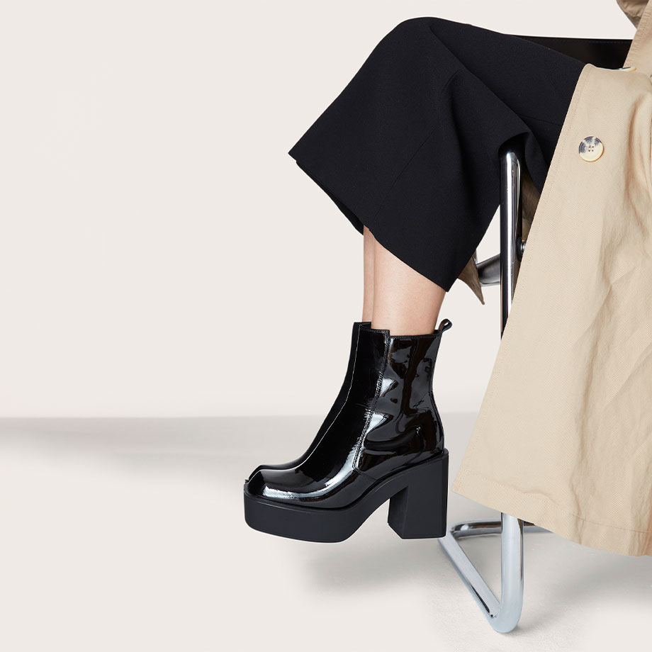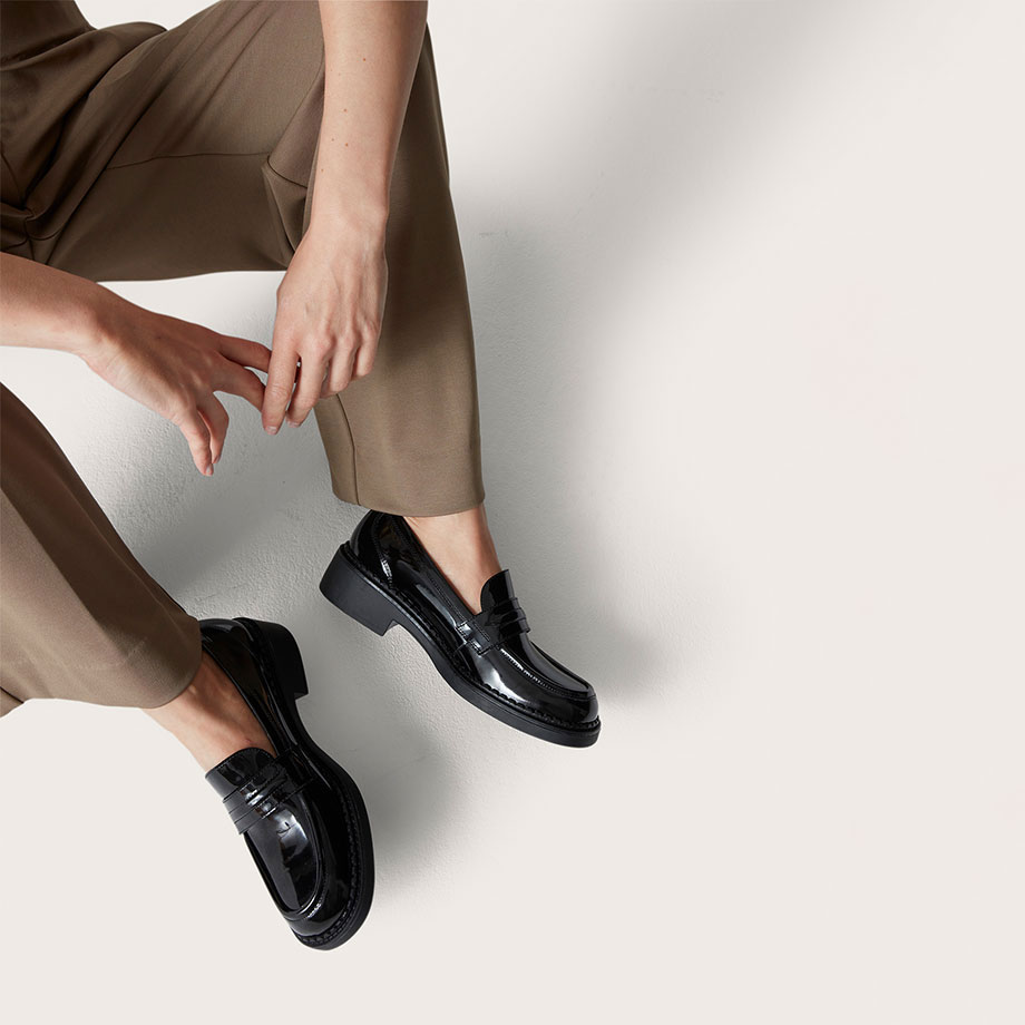 Aufpoliert und in neuen Facetten versprühen Key-Pieces in Lack-Optik femininen Charme mit tougher Coolness. Edgy und elegant kommen die Classics daher und feiern ihr Upgrade zu Smart Casual Looks. Die prachtvollen Glanzstücke sind im Fashion-Genre fest etabliert und überzeugen als trendige Alleskönner. Zurückhaltende Kombinationen in gedeckten Farbtönen stellen den grazilen Schuh gezielt in den Vordergrund, knallige Farbakzente unterstreichen den expressiven Charakter. Strenge Extravaganz wird zum bewussten Stilmittel und mit lockeren Fits und einem spannenden Material-Mix aufgebrochen. Lässige Oversized-Knitwear oder hochmodische Suit-Varianten sind hier unerlässliche Styling-Partner.