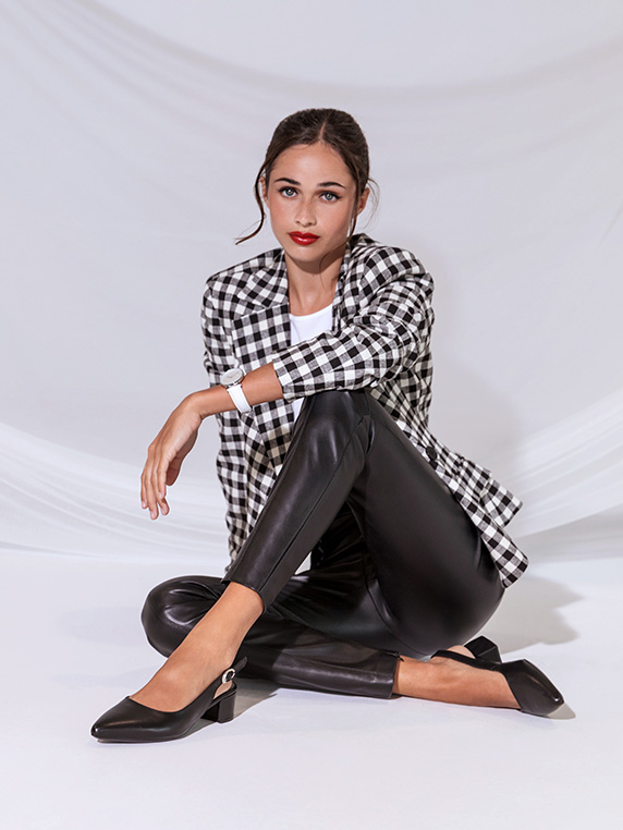 Materiaalmix van leer en synthetische weefsels